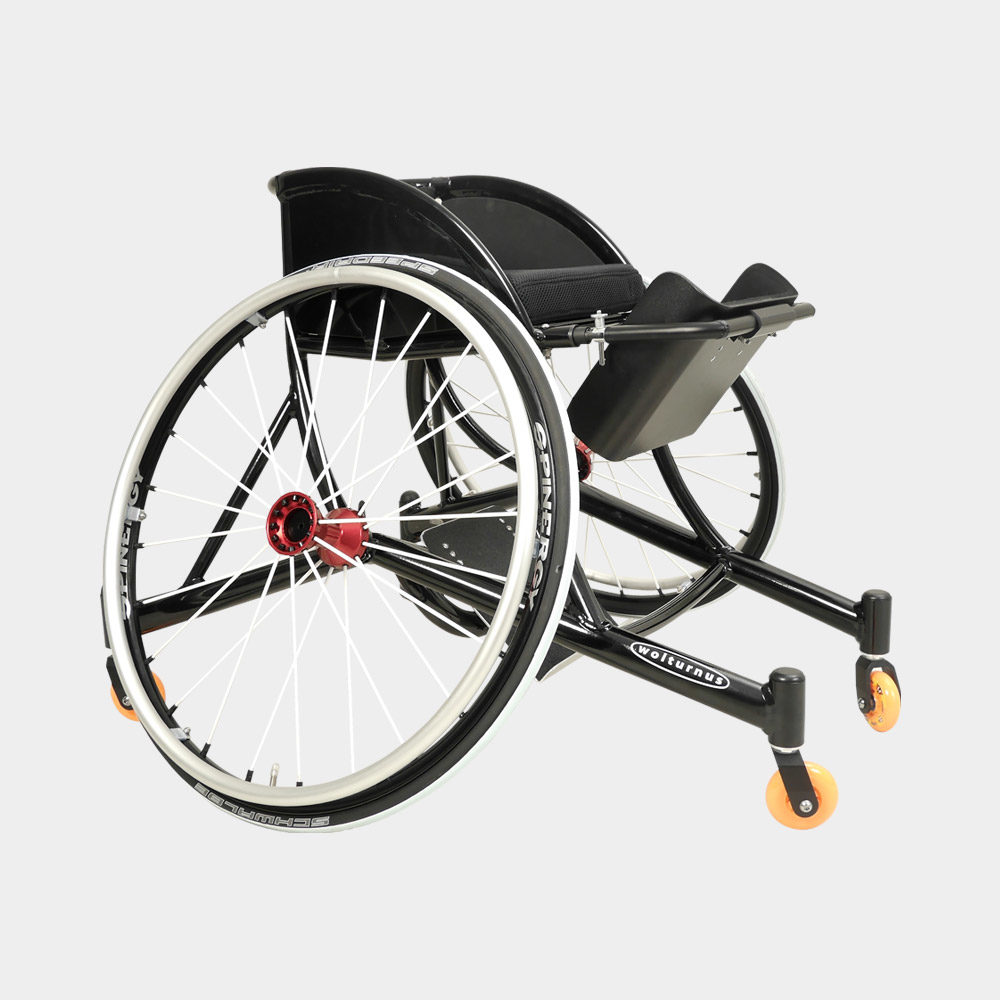 Fauteuil roulant rigide hautement spécialisé pour le tennis et entièrement personnalisé pour répondre aux souhaits et aux exigences de chaque joueur.
